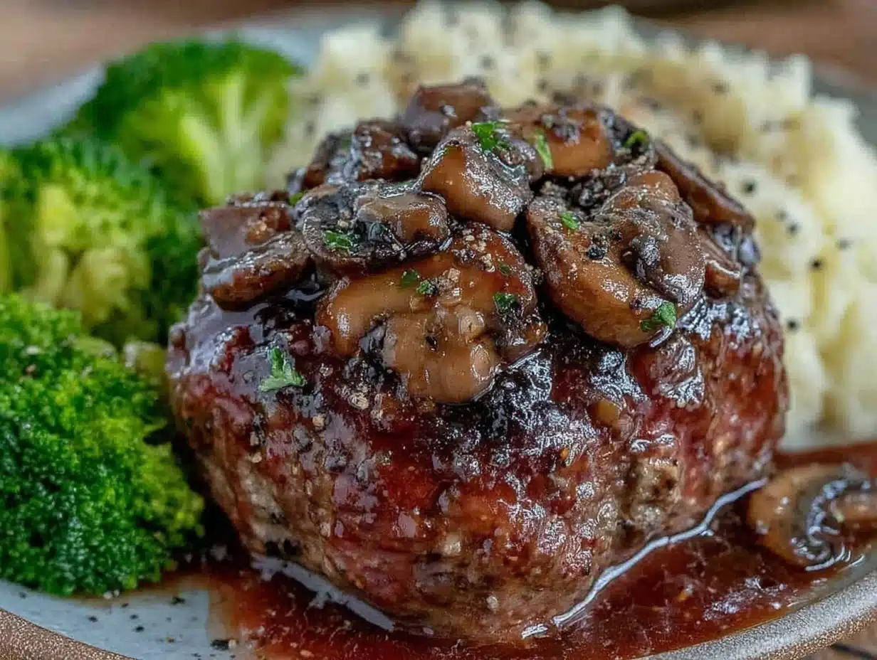 A nostalgic and easy-to-make Salisbury steak recipe featuring tender ground beef patties smothered in a luscious creamy mushroom gravy. Perfect for cozy dinners and crowd-pleasing meals.