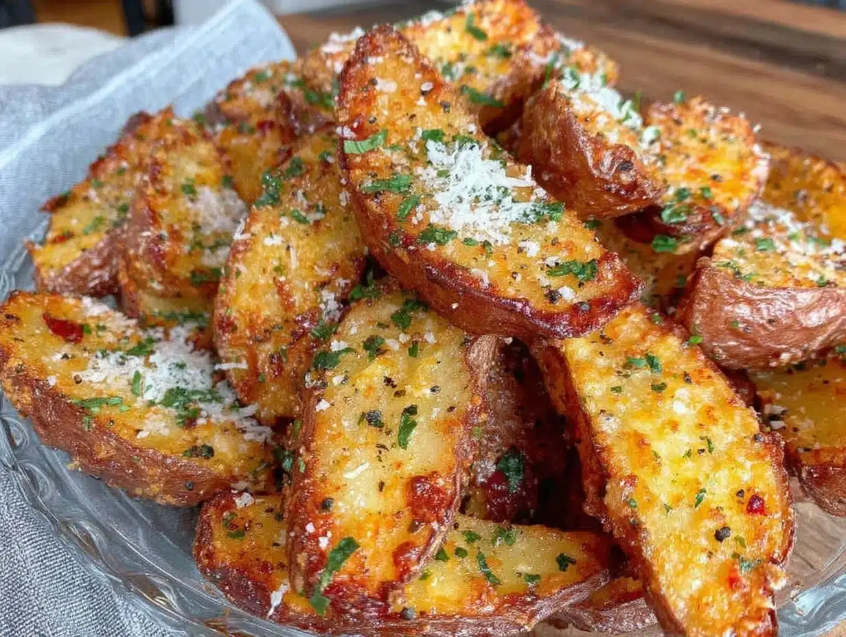 Keywords: potato wedges, garlic parmesan, crispy potatoes, easy side dish, oven-baked potatoes