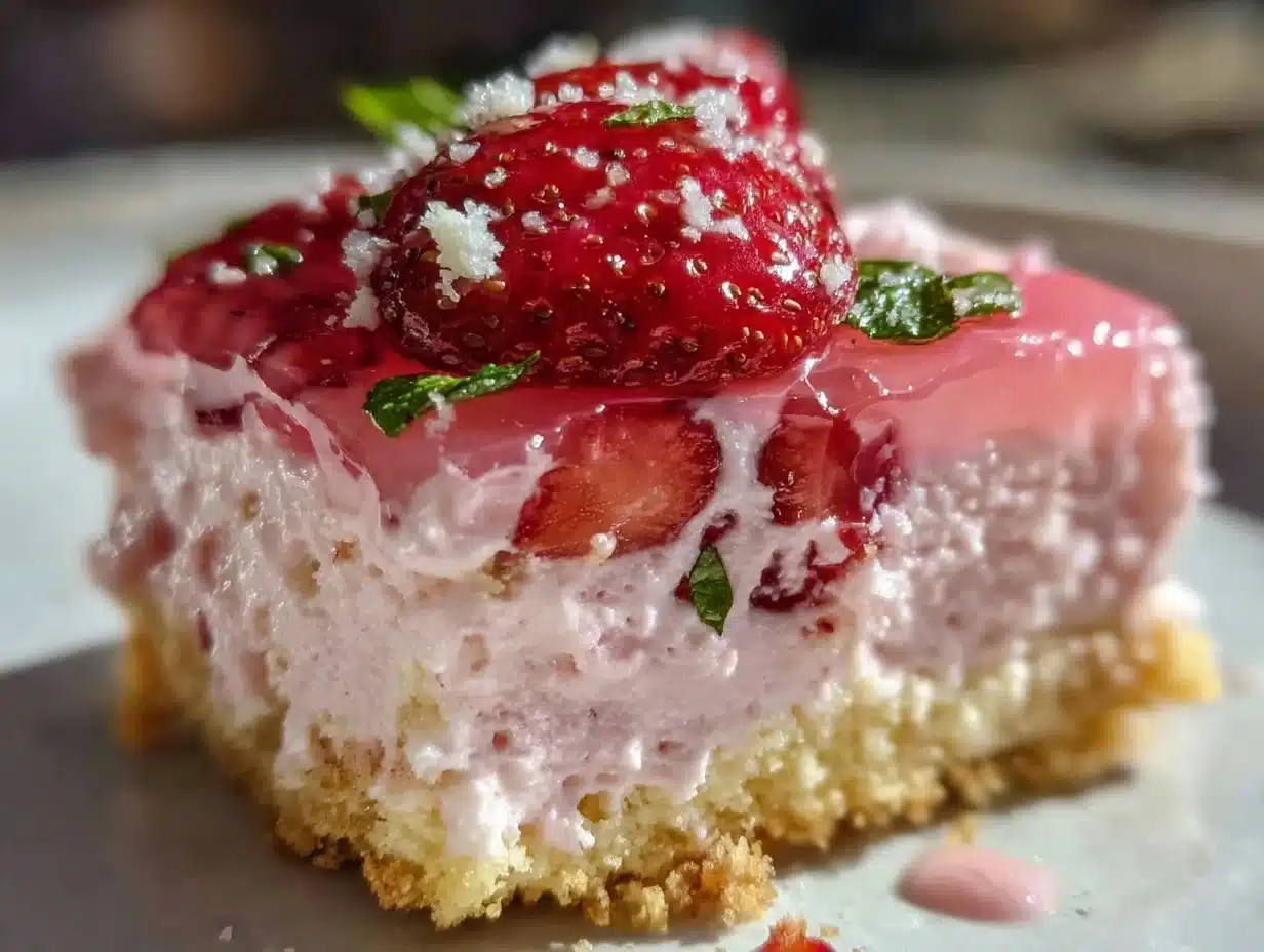 What happened next was unexpected. That first bite was like catching a soft cloud of strawberry goodness, cool and airy, with a subtle sweetness that wasn’t overwhelming. The gelatin glaze on top gave it a shiny finish and a slight wobble that just made it more fun to eat. I remember looking at that cake, sitting there with its pale pink hue, and thinking—how did something this simple turn out so magical?