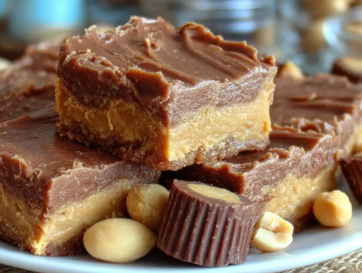 Keywords: peanut butter fudge, no-bake fudge, easy fudge recipe, peanut butter cup fudge, quick dessert, 5-ingredient fudge