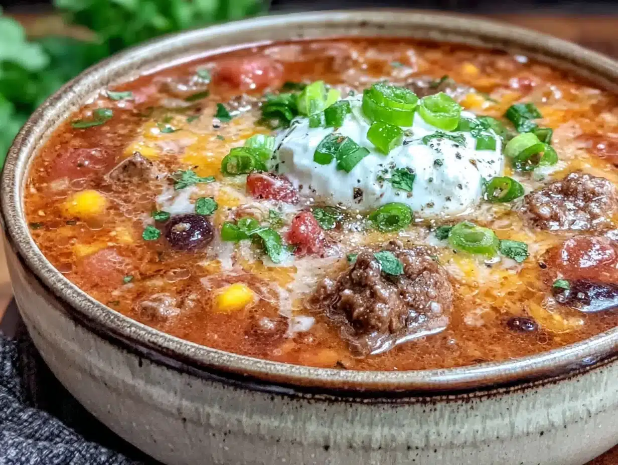 This isn’t just another taco soup. What makes this recipe stand out is the balance of flavors—it’s boldly seasoned without overwhelming, and the slow cooking pulls everything together beautifully. Plus, the five-ingredient simplicity means it’s impossible to mess up, which honestly has saved me more than once from a hangry evening.