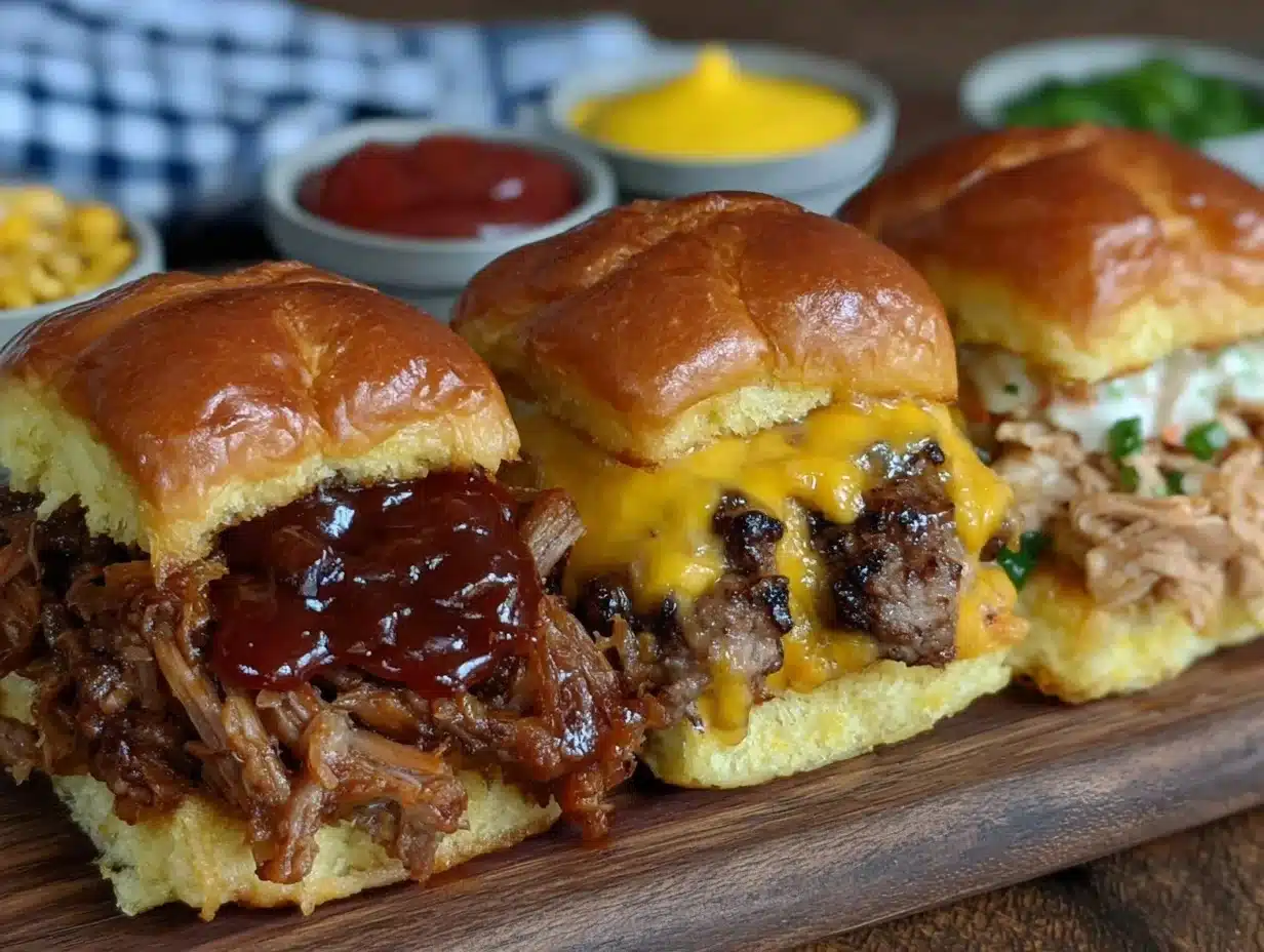 I truly love how each bite brings back memories of laughter, cheering, and good company. So go ahead—make it your own, mix up the toppings, and don’t be afraid to get a little messy. If you try this recipe, let me know your favorite slider combos in the comments below! Share your photos, swap in new ingredients, and spread the game day joy with friends and family. Here’s to flavorful fun and easy entertaining—happy cooking!